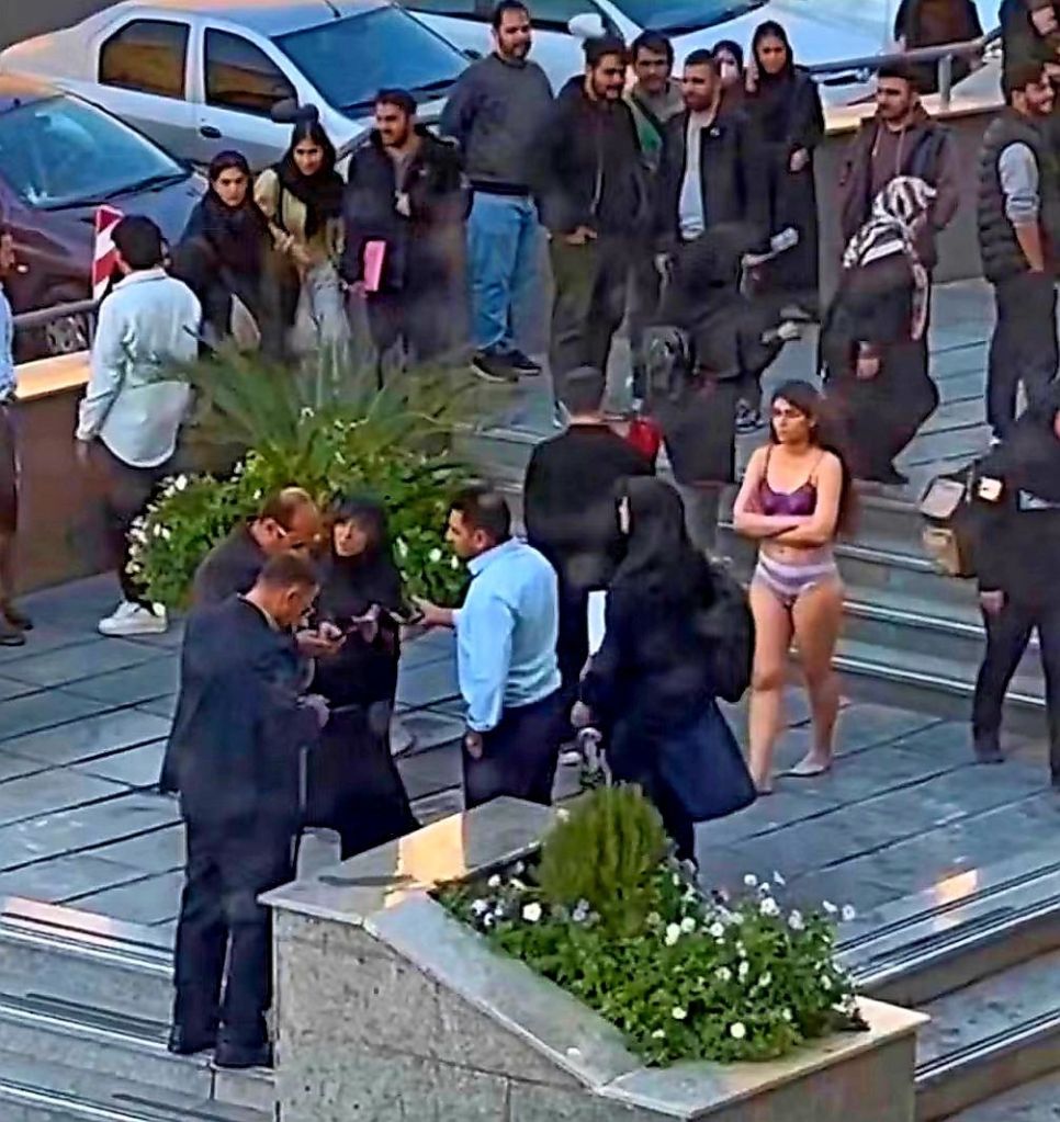 Ahoo Daryaei : « Le 2 novembre 2024, après avoir été harcelée par la milice islamiste Basij, qui l’aurait prise à partie pour non-port du hidjab, obligatoire dans ce pays, et lui aurait déchiré des vêtements ; elle aurait réagi en se déshabillant partiellement et en s’asseyant dans la cour de l’université pour protester3. Son acte audacieux a fait d’elle un symbole de la résistance contre les lois strictes du code vestimentaire iranien et l’application du hijab obligatoire, deux ans après la mort de Mahsa Amini pour les mêmes raisons. » (https://fr.m.wikipedia.org/wiki/Ahou_Daryaei )